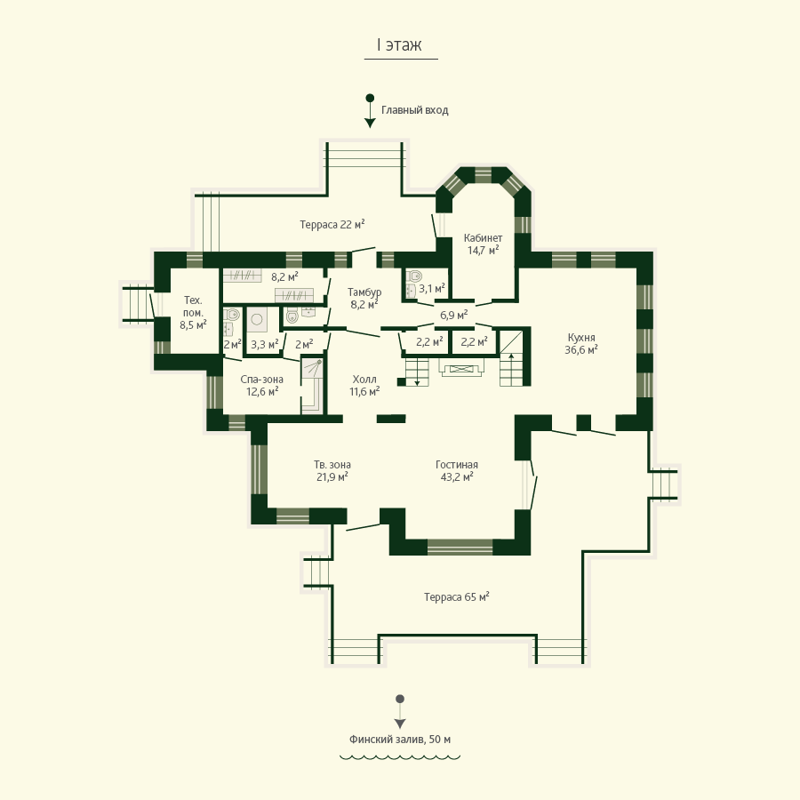 — Фундамент – железобетонная плита — Стены кирпичные, перекрытия монолитные — Мягкая черепица — Отделочный кирпич Wienerberger — Деревянные стеклопакеты — Центральные сети водопровода, канализации, электричества, теплоснабжения — Системы пожарной и охранной сигнализации в домах — Видеонаблюдение и охрана периметра комплекса
