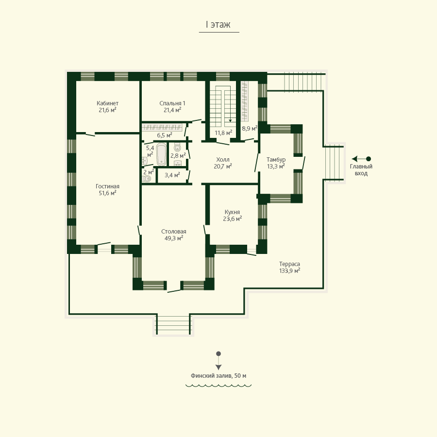 — Фундамент – железобетонная плита — Стены кирпичные, перекрытия монолитные — Мягкая черепица — Отделочный кирпич Wienerberger — Деревянные стеклопакеты — Центральные сети водопровода, канализации, электричества, теплоснабжения — Системы пожарной и охранной сигнализации в домах — Видеонаблюдение и охрана периметра комплекса